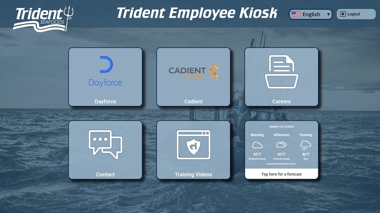 The system was also seamlessly integrated with Trident Seafoods’ existing HR infrastructure, including platforms like Cadient Talent for recruiting and onboarding, Dayforce for payroll and time tracking, and a range of digital training resources. This integration ensured that employees could access everything they needed from a single, centralized kiosk platform.