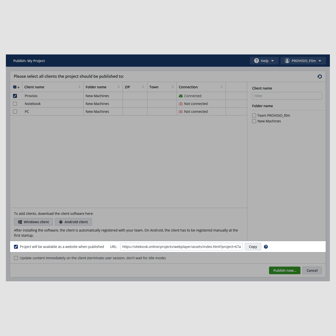 SiteKiosk Online projects can be opened in any browser via a URL, allowing multiple users to view documents, media, and information simultaneously—regardless of location. Please note that embedded external content must be publicly accessible for use with PWA.